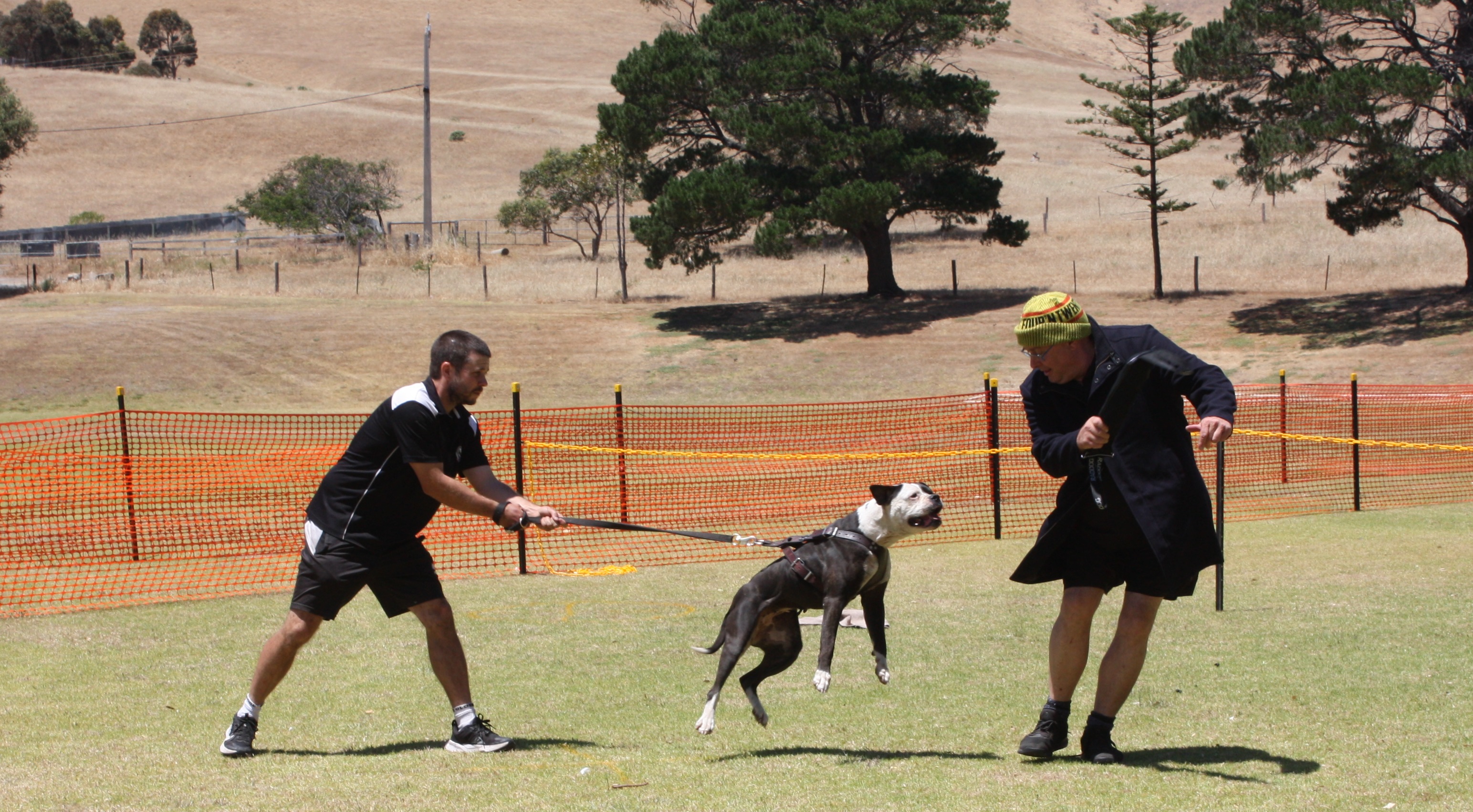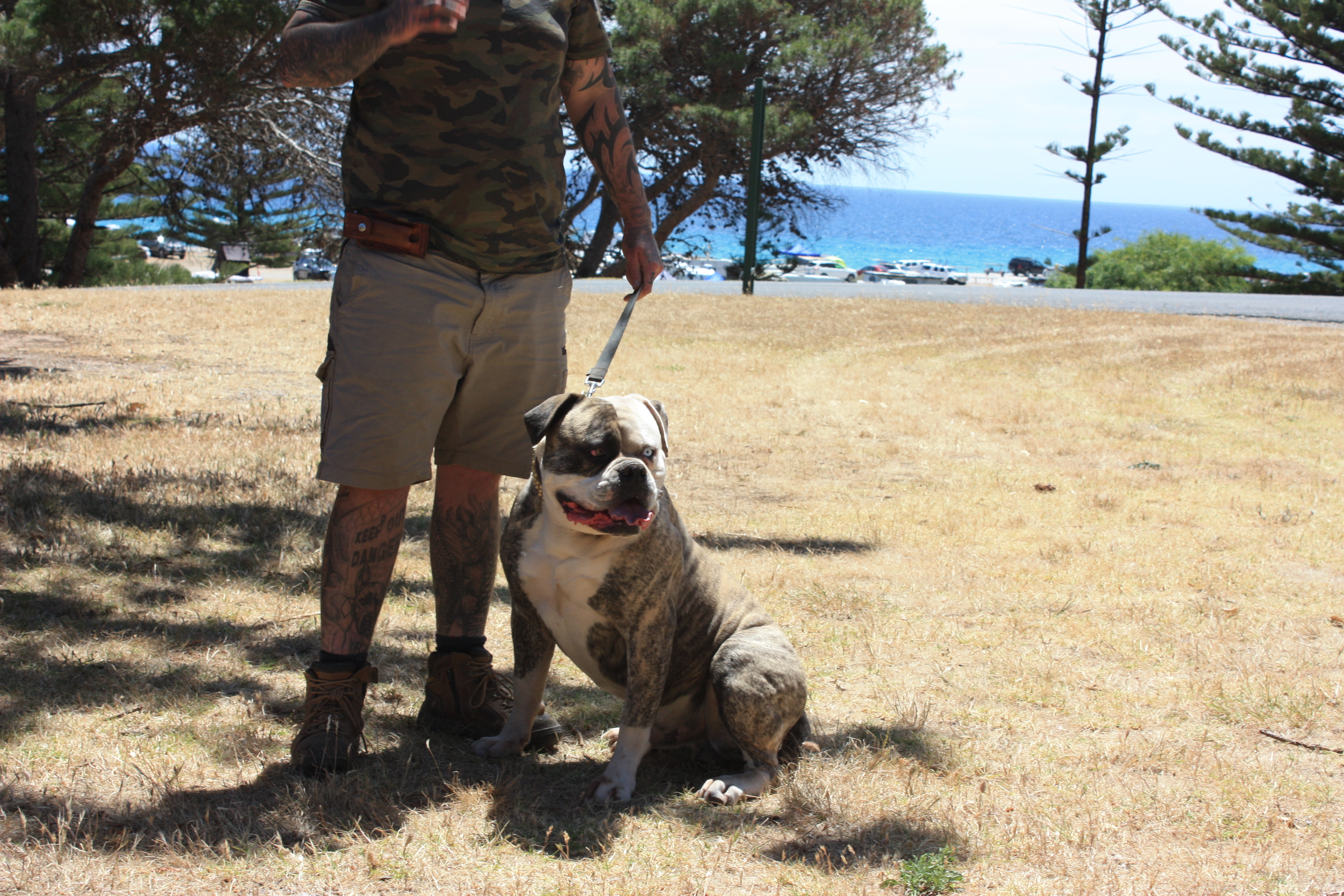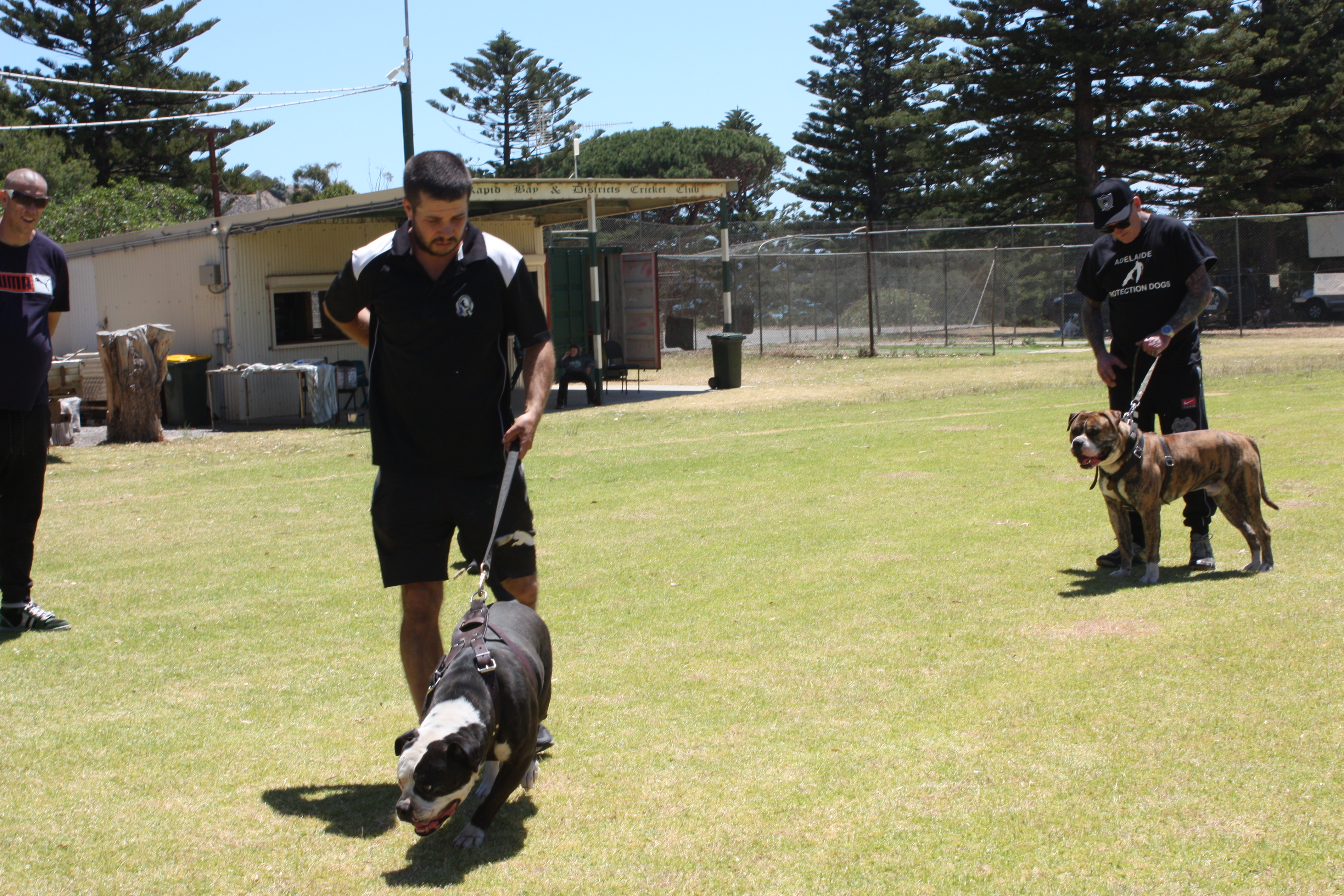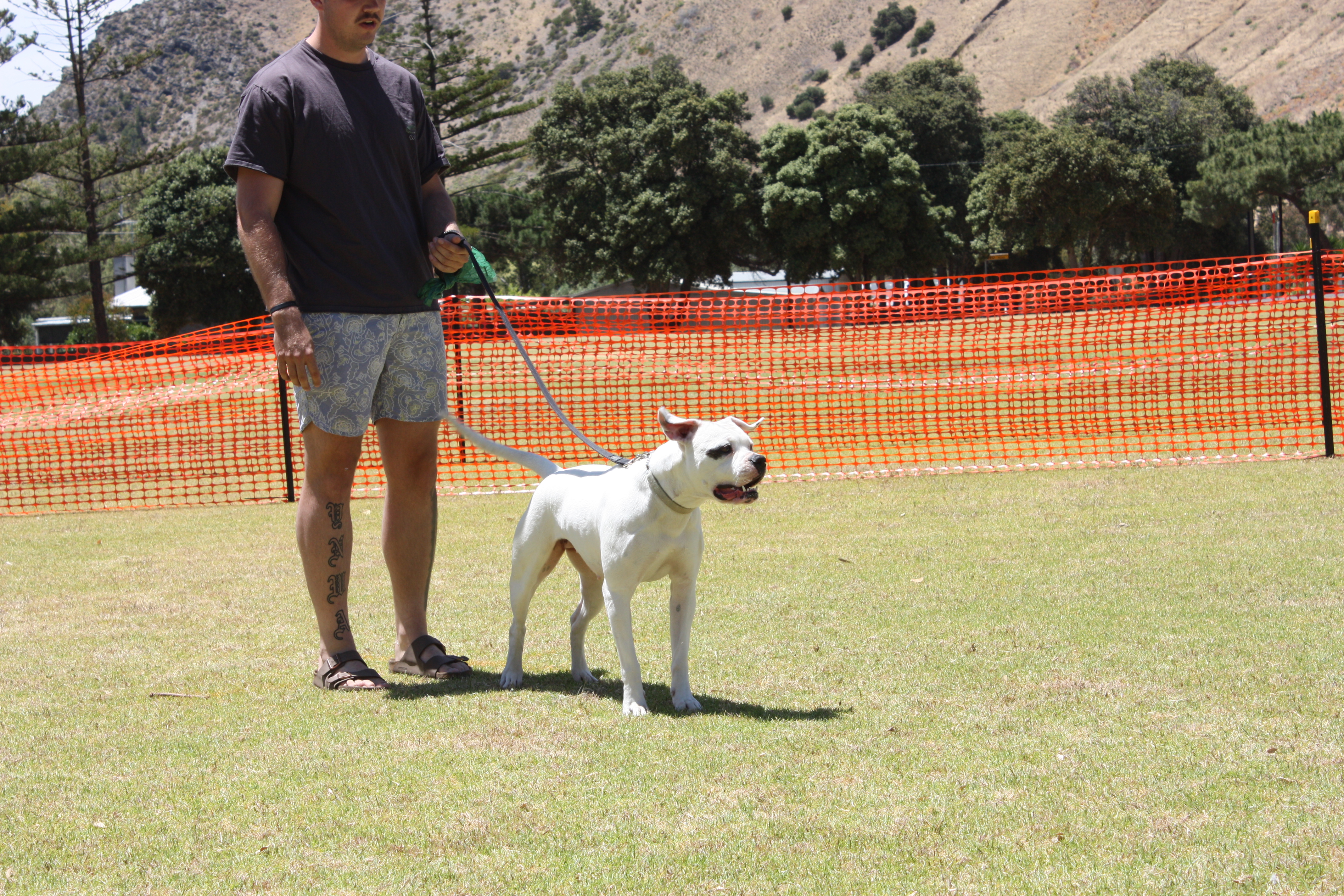 One by one the competitors roll up and find their shady spot at the picturesque show grounds overlooking the beach. The local caravan park is dog friendly and great value, only minutes away from the show grounds. People have travelled from Queensland and Victoria for the Show as it gets bigger year by year. Six major Bulldog kennels were represented at the show including Excalibur from Tasmania with Fury @ Badlands. Around 45 people attended on the day. Nine Bulldogs competed across the 5 events, Courage Test, Sprint, Obedience, Exhibition, Long Run. We ran the Champion and Junior Champion Competitions and awarded The Bulldog Legends Trophy.