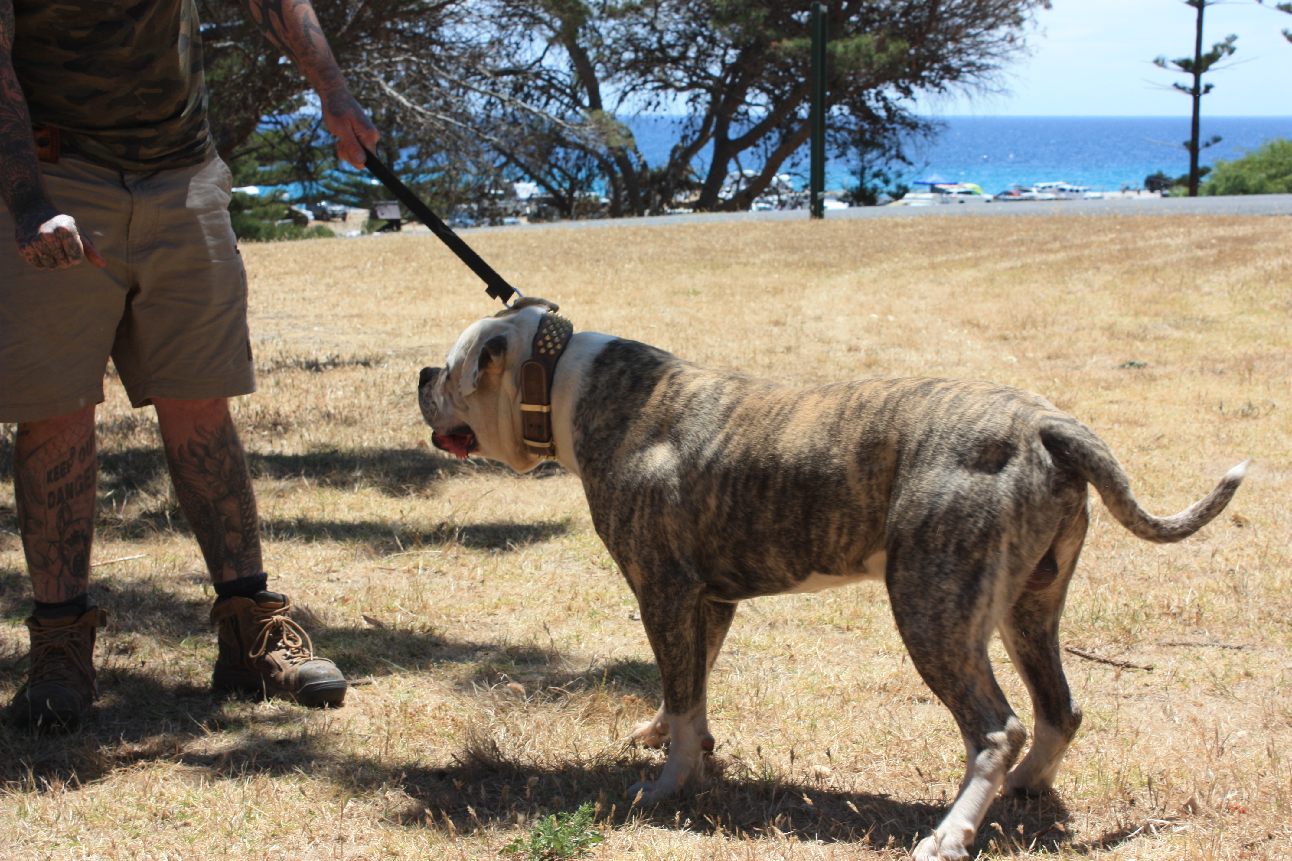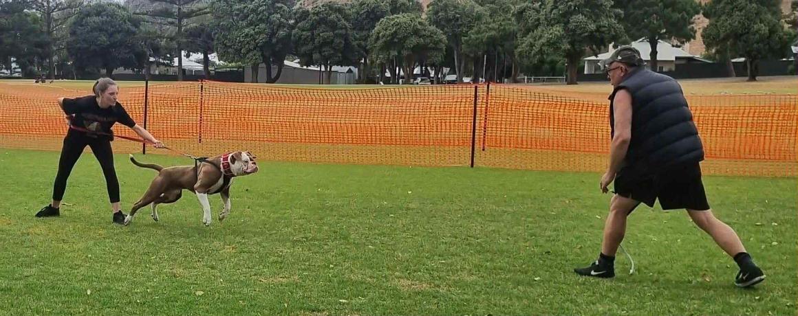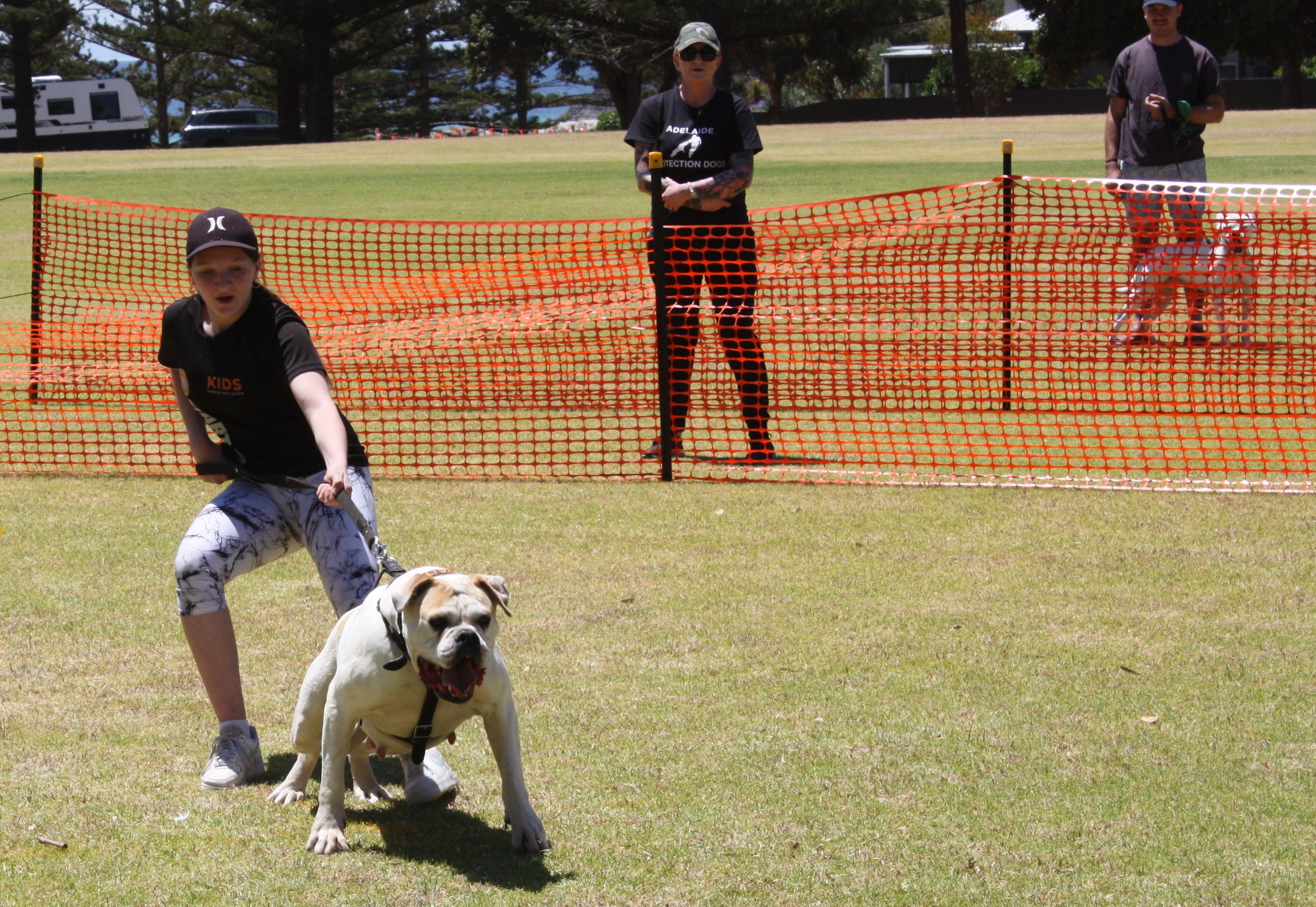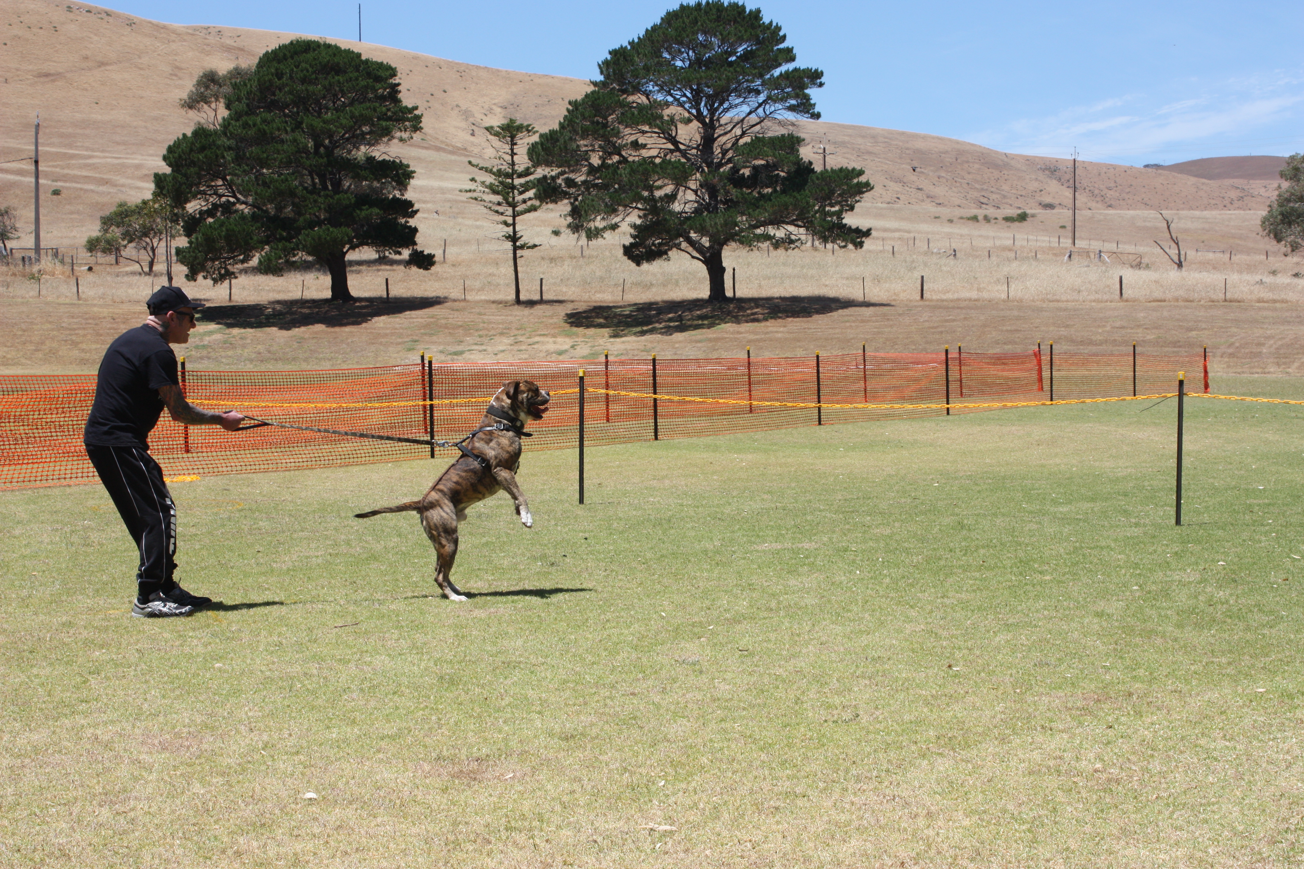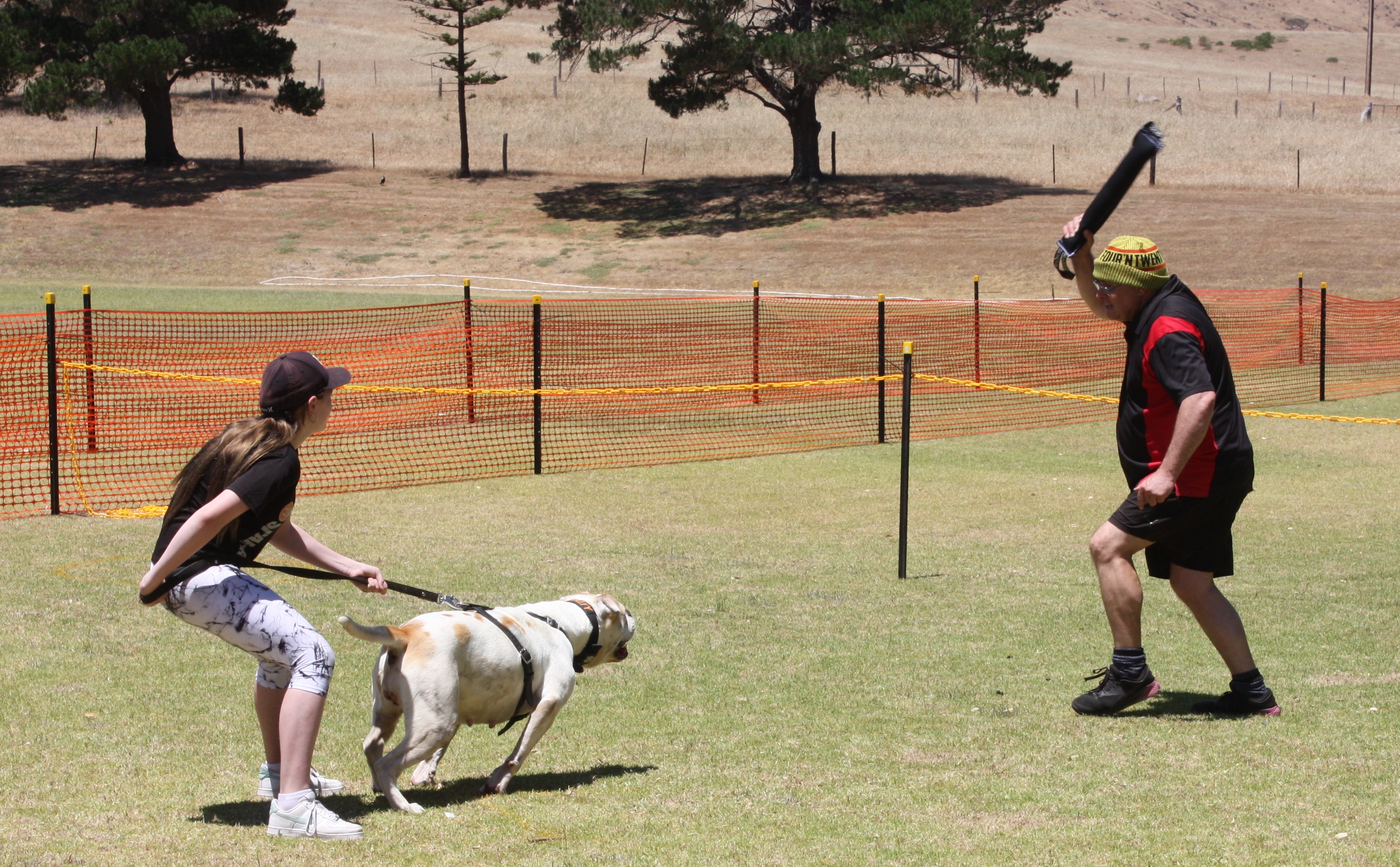 One by one the competitors roll up and find their shady spot at the picturesque show grounds overlooking the beach. The local caravan park is dog friendly and great value, only minutes away from the show grounds. People have travelled from Queensland and Victoria for the Show as it gets bigger year by year. Six major Bulldog kennels were represented at the show including Excalibur from Tasmania with Fury @ Badlands. Around 45 people attended on the day. Nine Bulldogs competed across the 5 events, Courage Test, Sprint, Obedience, Exhibition, Long Run. We ran the Champion and Junior Champion Competitions and awarded The Bulldog Legends Trophy.
