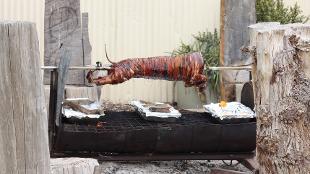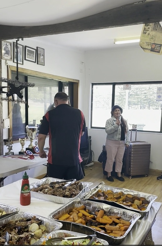 The preparations for each National Show begin pretty much as soon as the last show has finished. There are so many tasks to complete. In the days before the show David McGregor head down to Rapid Bay Cricket Club to setup the chains, fences and pickets for the show area and 50m sprint. Many months before he has negotiated the use of the grounds and Open Bar. David is more than just The Show Host. He collaborated on many of the duties of the Show Organizer - Dez Auld. The Badlands Crew Andrew and Beth also contribute much. And we must have a special mention of Hazel McGregor who created the Show Poster (in collaboration with my good self). The Rapid Bay Cricket Club especially Mukka and Coley are up early preparing the annual feast. Chopping veggies and cooking enough food for 100+ people. This year it was Pig, and last year lamb. It's not these guys first rodeo and the food is cooked to perfection, the roast veggies and salad (Beth and Andy) a rea treat. The presentation table is setup with all the Trophies (5 this year), medals, ribbons, and corsages. David and others camped at the grounds overnight to ensure everything was spot on. David, Andrew and Beth organized a cabin at the local (dog friendly - caravan park) for three visitors from Victoria, including the Show Judge and Dez.