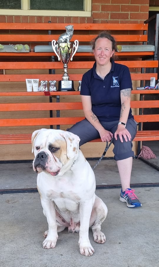 The owner of KEY's Robyn Banks, Hazel McGregor who lives in Queensland won the Junior Championship this year. It was fantastic to see competitors from three states, VIC, SA and QLD. Her dad David McGregor was awarded the "Irondog Bulldog Legends" trophy sponsored by Jimmy Macdonald in WA, who promises to attend the next Bulldog Show having sponsored the last two. The Legends trophy is given to the most inspiring Bulldog and Bulldog owner story for the year (in this case 2024).