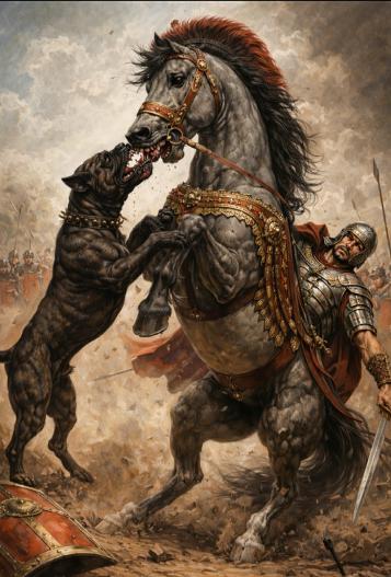 The Bulldog was created at least 3000 years ago has been known by many names (not a re-creation). Some of those are familiar to us some not and still others are lost in time, For example Bulldog, Bullenbeiser, Boxer and Pugnace are all names for the same breed (now canine family) of dog once upon a time. But what does that name mean . It means a dog that catches bulls (a Bull Biter, not a Bull Herder as well as horses etc). The very first Bulldogs were brindle. The Bulldog is a creation of the Ancient Britons. It is thousands of years old. It is written about by the Romans when they invaded Britain two thousand years ago. By then it came with brindle stripes (forest camouflage) or not and with or without a black mask. It's original Celtic name is lost in time but the Romans called it the "Pugnace" (Pug meaning "fist", "Fighter", Fighting Dog. aka Boxer). Its function now as then was as a fearless "holding dog" or "catch dog" (not a utility farm dog). Around 54 BC it is described as being used by the Britons to disrupt Roman cavalry units. The Bulldogs would run in, jump up and grab the Roman cavalry horses on the nose or jaw and hold on for grim death. The result was total chaos and effectively neutralized the cavalry as horses and riders were scattered. The Romans took the Briton's dogs back to Rome and pitted them against every kind of beast. Their conclusion was that The Bulldog (The Pugnace) was far superior to every other dog of the known world! The Briton's dog of course seeded many other breeds through the millennia. The modernist re-creation theory is a leftist lie. They try to re-write our history and destroy our hero's! Just as modernists try to change our language to "Standard" and "Classic". it's "Johnson & Performance" and so it will stay. There are of course those who are hardcore White Bulldog enthusiasts - I was one myself. As you dig deeper you find that a "Good Bulldog is any colour". And some Bulldogs became white fairly late in their development, approximately 2000+ years later.